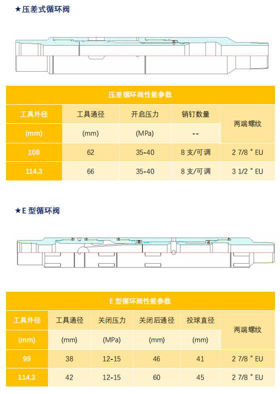 Circulating valve is a type of circulation tool used to establish oil casing connection underground. It is generally operated by throwing ball or pressure difference to open or close the circulation channel. Commonly used circulating valves include normally open valve, normally closed valve, pressure difference circulating valve, and E-type circulating valve.