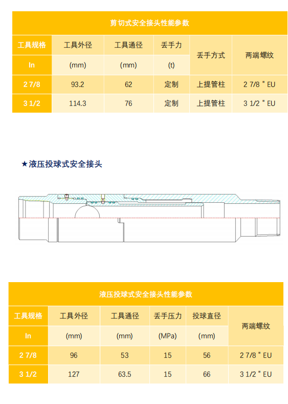 The safety joint is the core tool for protecting the downhole operation string. In the event of accidents, drill jamming, or failure to release the packer, the tool below the safety joint can be released by rotating the string, lifting the string, or throwing the ball to hold pressure, and the string above the safety joint can be lifted out to facilitate subsequent salvage operations.
